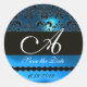 STICKER ROND MONOGRAMME DE DAMASK EN SAPHIRE NOIR ET BLEU,