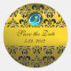 Sticker Rond MONOGRAMME DE DOMMASQUES JAUNES, turquase bleue