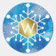 Un élégant autocollant de monogramme rond de flocon blanc et or que vous pouvez personnaliser! Le design unique des étiquettes de vacances en cercle comprend un beau lave-linge bleu et violet à l'eau de couleur or petite et des flocons de neige blancs. Personnalisez avec votre propre initiale et utilisez-les comme scellés ronds pour vos cartes de Noël personnalisées cette année ! Catégorie : autocollants de monogramme circulaire; autocollants de vacances personnalisés; autocollants de Noël personnalisés. Couleurs : violet et bleu, blanc et faux or.