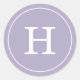 Un autocollant rond lavande couleur mariage design avec un monogramme blanc qui peut être personnalisé avec votre initiale. Parfait pour envoyer avec des invitations de mariage.