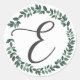 Sticker Rond Monogramme de lettre E Couronne de feuilles botani