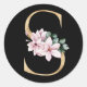 Sticker Rond Monogramme de magnolia floral en lettre S dorée