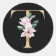 Sticker Rond Monogramme de magnolia floral en lettre T or