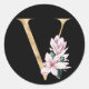 Sticker Rond Monogramme de magnolia floral en lettre V or