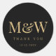 Sticker Rond Monogramme de mariée d'or noir moderne Merci