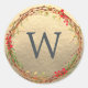 Sticker Rond Monogramme de Noël Vert hiver Wreath Gold