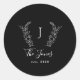 Monogramme classique personnalisé avec lauriers et année d'établissement autocollant chic noir et blanc. +++++++ Une étiquette cadeau ou un sceau d'enveloppe chic pour les mariages, le renouvellement de vœux, les anniversaires, les pendaisons de crémaillère, les nouveaux domiciles, la fête de Thanksgiving, Noël ou toute autre occasion.