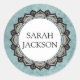 Monogramme de nom floral décoratif stylisé sur un fond bleu gris à motifs. Élégant et décoratif. Teintes profondes riches. Cet autocollant fait un excellent ex-libris, ou est idéal pour étiqueter votre ordinateur portable. Personnalisez avec votre nom ou vos initiales, puis cliquez sur personnaliser pour redimensionner vos lettres si nécessaire.
