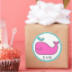 Sticker Rond Monogramme de Preppy Nautical Pink et Aqua Whale