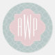 Sticker Rond Monogramme de Quatrefoil rose et vert