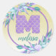 Sticker Rond Monogramme de sirène d'aquarelle florale ombre