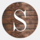 Sticker Rond Monogramme de texture de bois Brown rustique