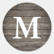 Sticker rond classique Monogramme de texture en bois rustique