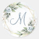 Sticker Rond Monogramme de verdure florale bleue poussiéreuse é
