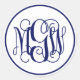 Sticker Rond Monogramme de vigne bleue de la Marine blanche, do