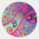 Sticker Rond MONOGRAMME DÉCO ABSTRAIT Fuchsia Blue