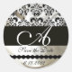 STICKER ROND MONOGRAMME D'ÉTIQUETTE NOIR ET SILK BLANC