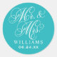 Célébrez les jeunes mariés avec cet élégant autocollant rond monogramme « Mr. et Mrs. » sarcelle. Une calligraphie blanche ornée écrit « Mr. et Mrs. » au-dessus du nom de famille du couple et de la date du mariage sur un fond sarcelle vibrant. L'écriture sophistiquée et la couleur audacieuse créent un accent moderne saisissant. Parfait pour les sacs de faveurs, les boîtes-cadeaux ou les sceaux d'enveloppe. Tout le texte est entièrement personnalisable.