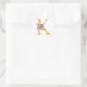 Sticker Rond Monogramme en or lettre K avec des fleurs