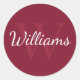 Sticker Rond Monogramme et nom personnalisé Bourgogne rouge