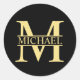 Sticker Rond Monogramme et nom personnalisés noir et or