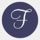 Sticker Rond Monogramme F, blanc sur bleu marine,