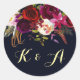 COULEUR ARRIÈRE - PLAN CHANGEABLE. Sticker Monogram de style bohème avec aquarelle illustration de bordeaux, marsala, pivoines rouges et roses et roses avec plumes accent sur arrière - plan bleu marine. Il est parfait pour les événements automne/automne/hiver, fleuris et bohème. Des articles correspondants sont également disponibles. * Veuillez cliquer sur le bouton "Personnaliser" pour modifier la couleur, la police et la taille.