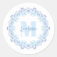 Ce design comprend un élégant monogramme bleu monogrammé, bleu clair monogramme initial, fleurs florales feuilles, feuillage nature mandala cercle, script de calligraphie stylisée tendance, typographie lunaire personnalisée, autocollant étiquette customisé sur mesure, une élégance romantique simpliste, moderne élégant simpliste doux, nom autocollant monogrammé étiquette