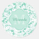 Sticker Rond Monogramme Floral Vert Mint Moderne Avec Nom