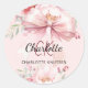 Un fond rose pastel féminin, orné d'un grand ruban rose et de fleurs roses. Texte : Joyeux Anniversaire !. Personnalisez et ajoutez votre prénom, vos initiales de monogramme et votre nom complet.