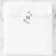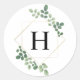 Un autocollant de mariage présentant un design de verdure botanique inspiré de l'aquarelle autour d'un cadre géométrique avec monogramme noir.