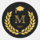 Monogramme de graduation de la couronne de laurier doré sur Sticker noir. Texte prêt à être personnalisé.