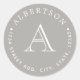 Sticker Rond Monogramme gris classique Nom de famille Adresse d