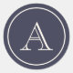 Ajoutez une touche de finition élégante à vos cartes, invitations, faveurs et cadeaux avec ces sceaux monogrammes. Design dispose d'un arrière - plan bleu nuit muet avec garniture ecru et votre initiale ou monogramme en typographie de bloc raffinée. Acheter les articles correspondants ici :