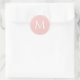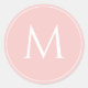 Monogramme initial élégant pastel rose autocollant rond classique. La couleur du texte et du fond est personnalisable.