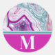 Monogramme Initial de Style Classique avec Pierre d'Agate Rose Turquoise Moderne Chic. Les cristaux et les géodes continuent d'être une tendance favorite ! Cette impression présente une image rapprochée d'une pierre de géode turquoise et violette ou rose magenta vibrante, avec de petits cristaux. Ajoutez votre initiale pour le personnaliser.