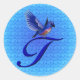 Elégante lettre monogramme T avec un joli autocollant ou étiquette bleu. Cliquez sur Personnaliser pour ajouter le texte que vous souhaitez personnaliser cet élément. Super idée cadeau ! Visitez Smilin' Eyes Monograms pour voir plus de cartes et cadeaux à base de fleurs, de nature et d'arts numériques.
