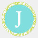 Sticker Rond Monogramme J Chartreuse bleu pâle Mer personnalisa