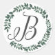 Sticker Rond Monogramme Lettre B Couronne de Feuilles Botanique