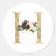 Sticker Rond Monogramme lettre dorée fleurs boho bordeaux Clas