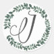 Sticker Rond Monogramme lettre J Couronne de feuilles botanique