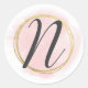 Sticker Rond Monogramme Lettre N Rose Blush Aquarelle Or Chic