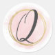 Sticker Rond Monogramme lettre Q rose blush aquarelle or chic