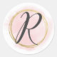 Sticker Rond Monogramme lettre R rose blush aquarelle or chic