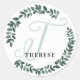 Sticker Rond Monogramme lettre T Nom personnalisé Botanique min