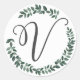 Sticker Rond Monogramme Lettre V Couronne de Feuilles Botanique