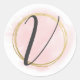 Sticker Rond Monogramme lettre V rose blush aquarelle or chic