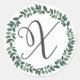 Sticker Rond Monogramme Lettre X Couronne De Feuilles Botanique