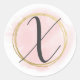 Sticker Rond Monogramme lettre X rose blush aquarelle or chic