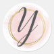 Sticker Rond Monogramme lettre Y rose blush aquarelle or chic